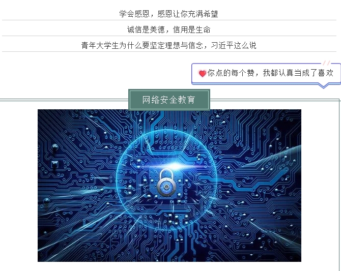 9月19日至25日是國家網絡安全宣傳周,雖然現在網絡已成為我們生活中的一部分,但網民們的網絡安全意識和防護技能依舊很薄弱。所以在這里我們推出了一些網絡安全注意事項,也希望同學們可以謹慎對待網絡。 ?