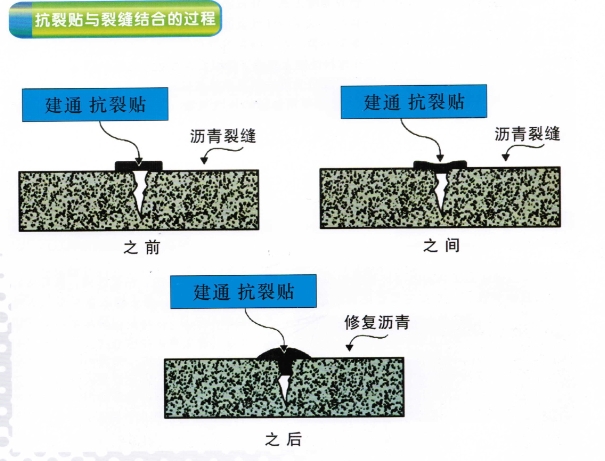 抗裂貼縫帶克服了單純使用土工布、玻璃纖維格柵抗裂而造成的界面性抗裂貼應用,這種界面性影響到瀝青面層的受力狀況,影響了抗裂能力。